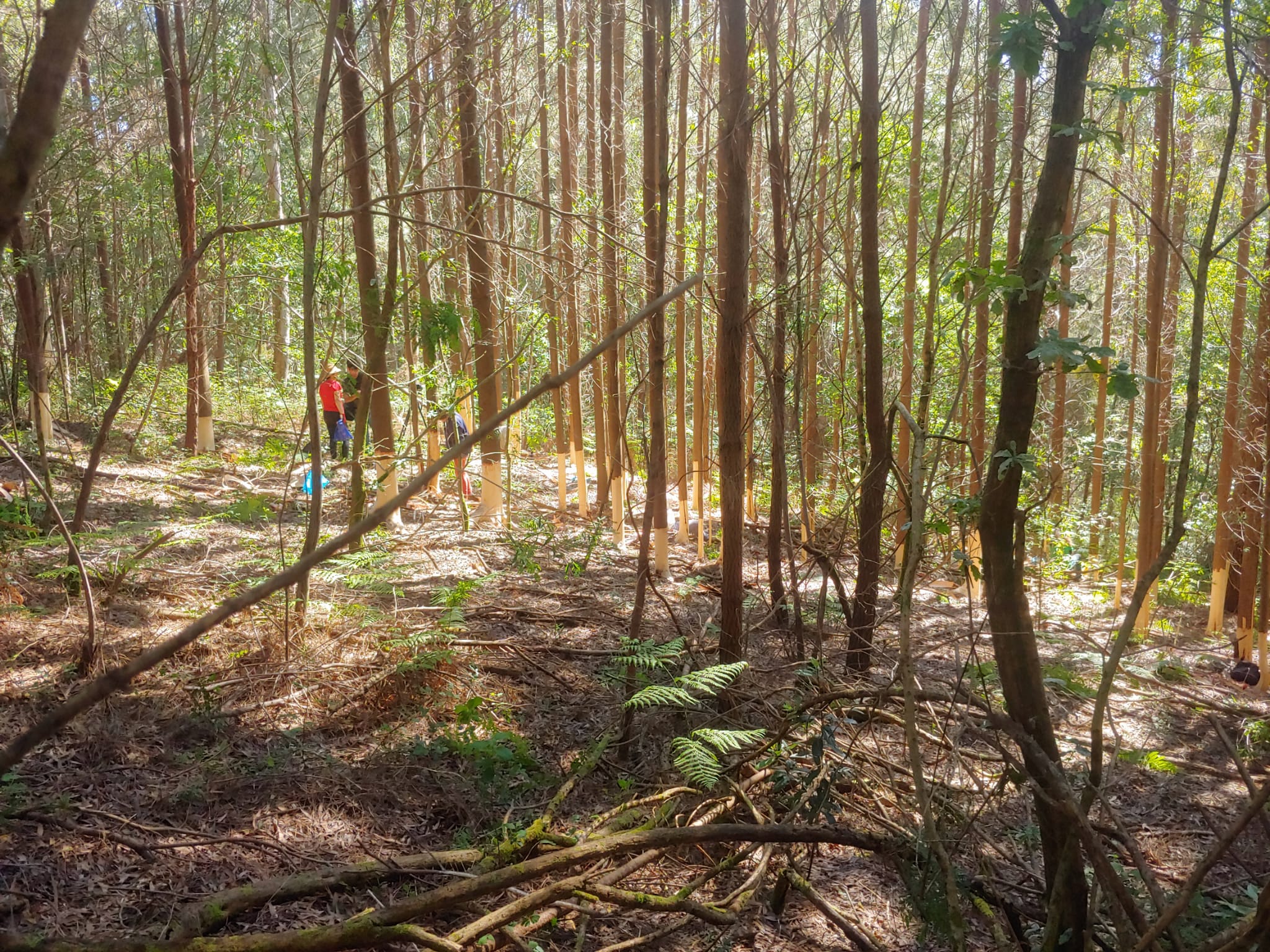 The Brigadas Deseucaliptizadoras is a grassroots movement that started in 2017 after yet another wave of deadly fires swept across Galicia, a region in the northwest of Spain. Their interventions into Galician landscapes constitute the removal of eucalyptus and acacia trees, working together with local communities. More than 1,500 people are currently signed up to the Brigadas and a few times per month the group engages in acts of destruction in different places across Galicia. Their interventions constitute a morning of work, where chainsaws and handsaws are used to cut down trees, younger exemplars are pulled out of the grand, regrowth is cut away with a small axe, or the bark of trees is cut and then peeled off the trees as to allow fungi to enter and effectively kill the tree. After the work is done, a communal lunch and an afternoon activity are organized.